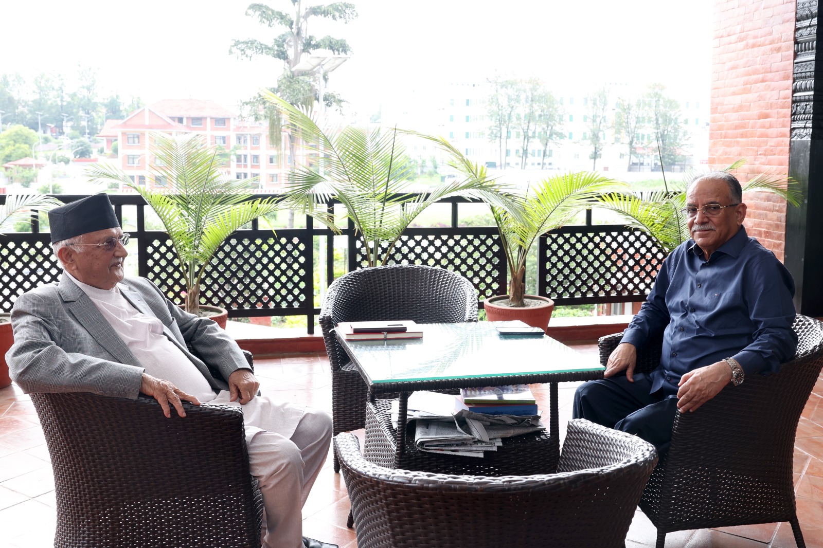 काठमाडौँ – नेकपा एमालेका अध्यक्ष केपी शर्मा ओली प्रधानमन्त्री पुष्पकमल दाहाललाई भेट्न बालुवाटार पुगेका छन् ।