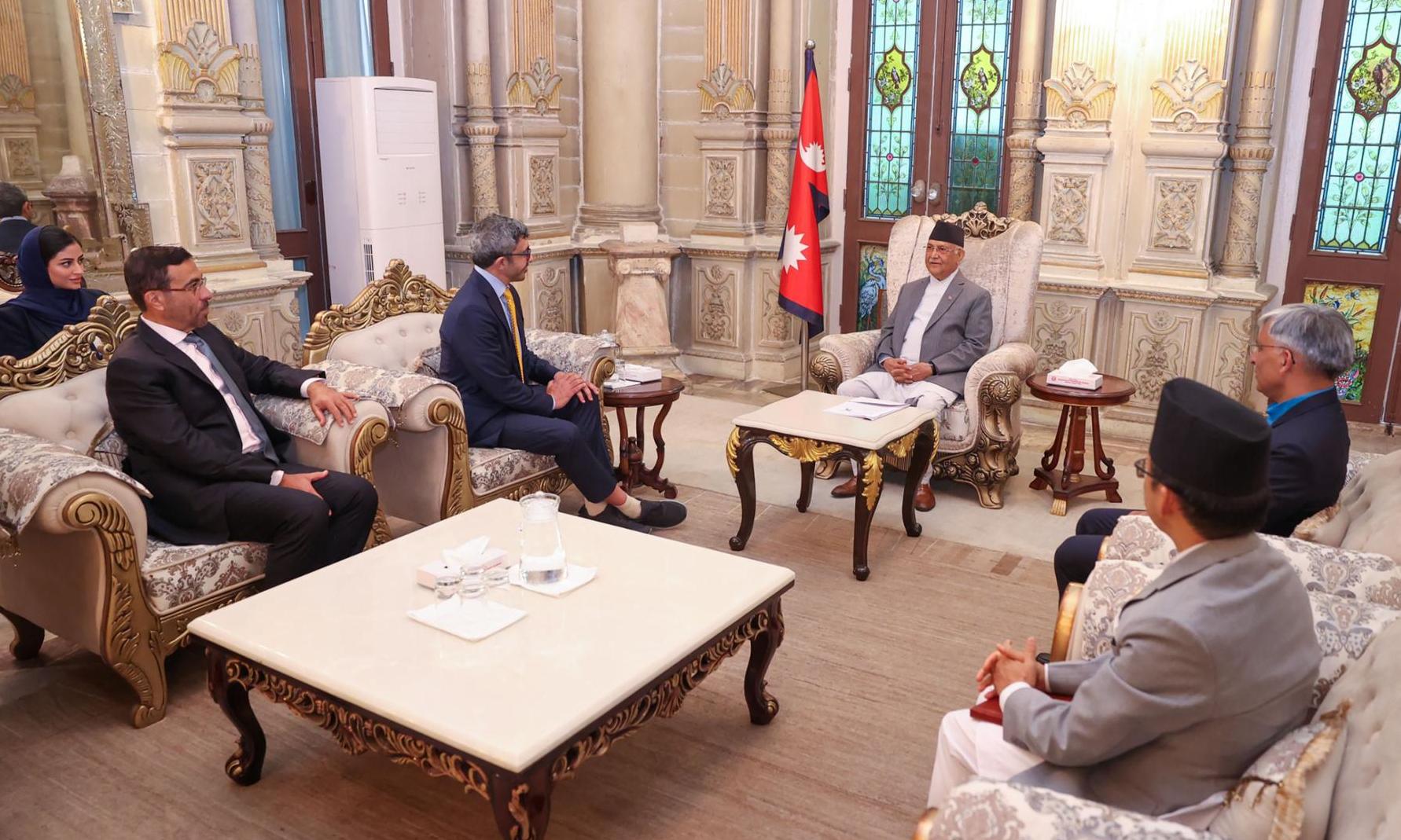 काठमाडौँ, १० वैशाख – प्रधानमन्त्री केपी शर्मा ओलीसँग संयुक्त अरब इमिरेट्स (युएई) का उपप्रधानमन्त्री एवं विदेशमन्त्री शेख अब्दुल्लाह बिन जायेद अल नाह्यानले आज शिष्टाचार भेटवार्ता गर्नुभएको छ ।