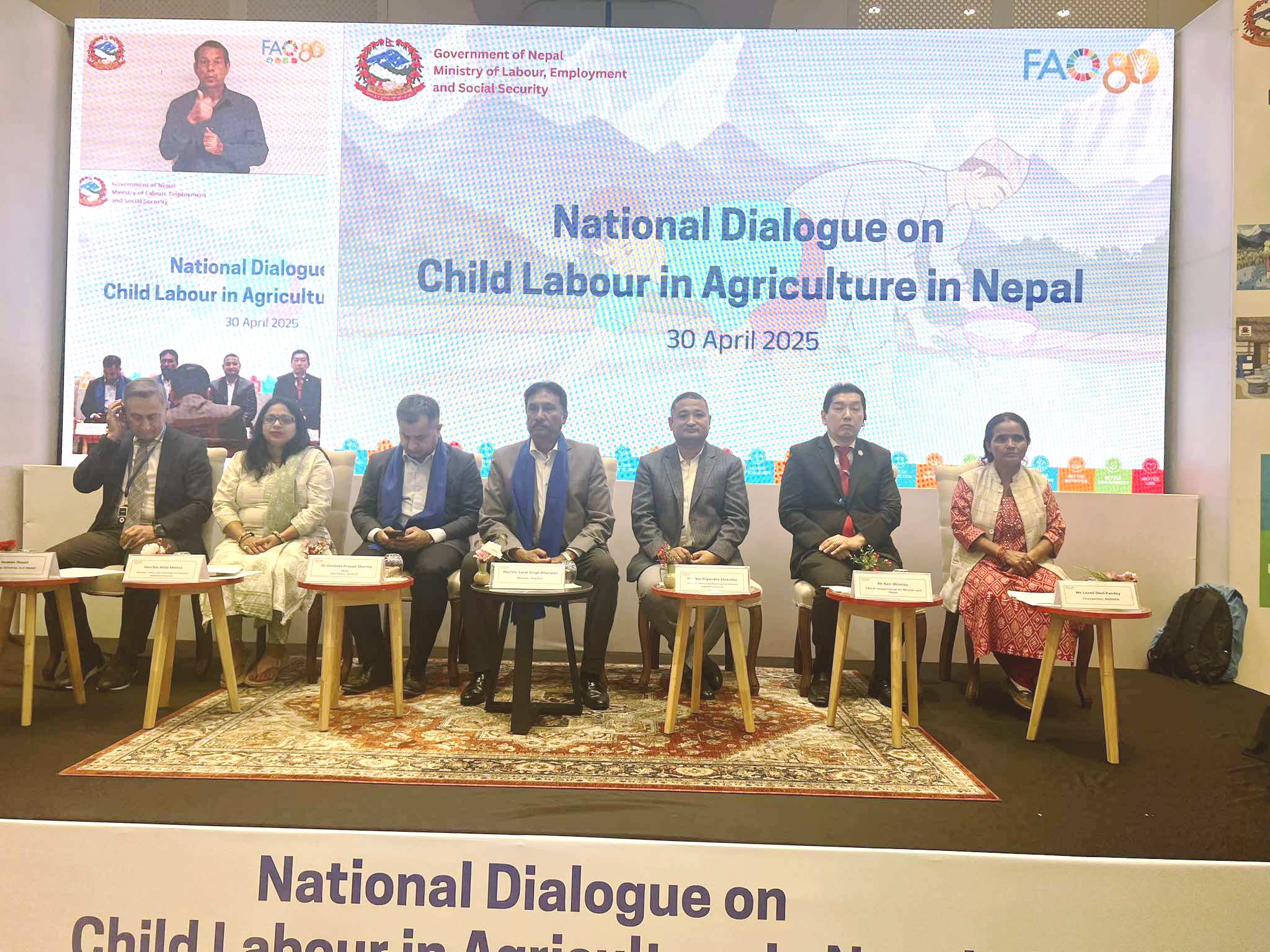 कृषि तथा पशुपन्छी विकास मन्त्रालयका सचिव डा गोविन्दप्रसाद शर्माले हाम्रो व्यवहार र सामाजिक कार्यशैलीले पनि कृषि क्षेत्रमा बढी बालबालिका श्रममा रहेको बताउनुभयो । श्रम, रोजगार तथा सामाजिक सुरक्षा मन्त्रालयका सहसचिव चक्रपाणि पाण्डेले बालबालिकाको संरक्षण, शिक्षा र स्वास्थ्यजस्ता आधारभूत अधिकारहरु सुरक्षित गर्दै कृषि क्षेत्रमा रहेको बालश्रम अन्त्य गर्नुपर्ने बताउनुभयो । उहाँले कृषि क्षेत्रमा रहेको ८७ प्रतिशत बालश्रमलाई अन्त्य गर्न यसलाई कानुनीरुपमा परिभाषित गर्दै प्रचारप्रसार गर्नुपर्ने आवश्यकता रहेकोमा जोड दिनुभयो । बाल श्रम उन्मूलनको राष्ट्रिय नीति, रूपरेखा र कार्यान्वयन विषयमा प्रस्तुतीकरण गर्नुहुँदै श्रम, रोजगार तथा सामाजिक सुरक्षा मन्त्रालयका सहसचिव जीतेन्द्रप्रसाद शर्माले विश्वमा १६ करोड बालबालिका बालश्रममा प्रयोग भएकोमा सात करोड ९० लाख जोखिमपूर्ण बालश्रममा संलग्न भइरहेको उल्लेख गर्नुभयो ।