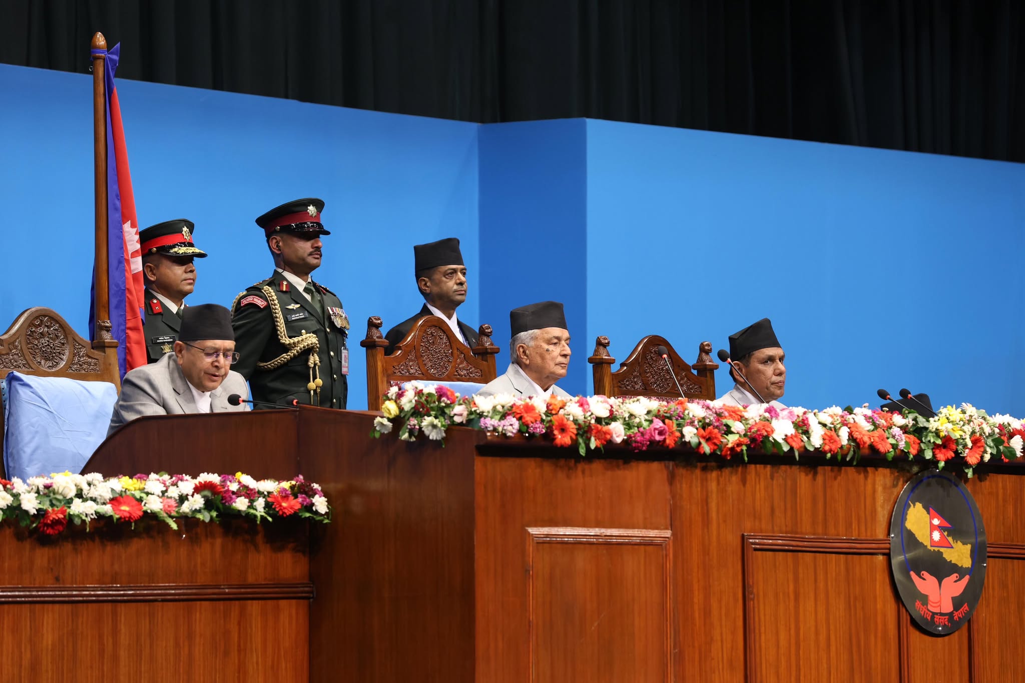 नयाँ बानेश्वरस्थित सङ्घीय संसद् भवनमा बसेको प्रतिनिधिसभा र राष्ट्रियसभाको संयुक्त बैठकमा अहिले राष्ट्रपति पौडेलले नीति तथा कार्यक्रम वाचन गरिरहनुभएको छ ।