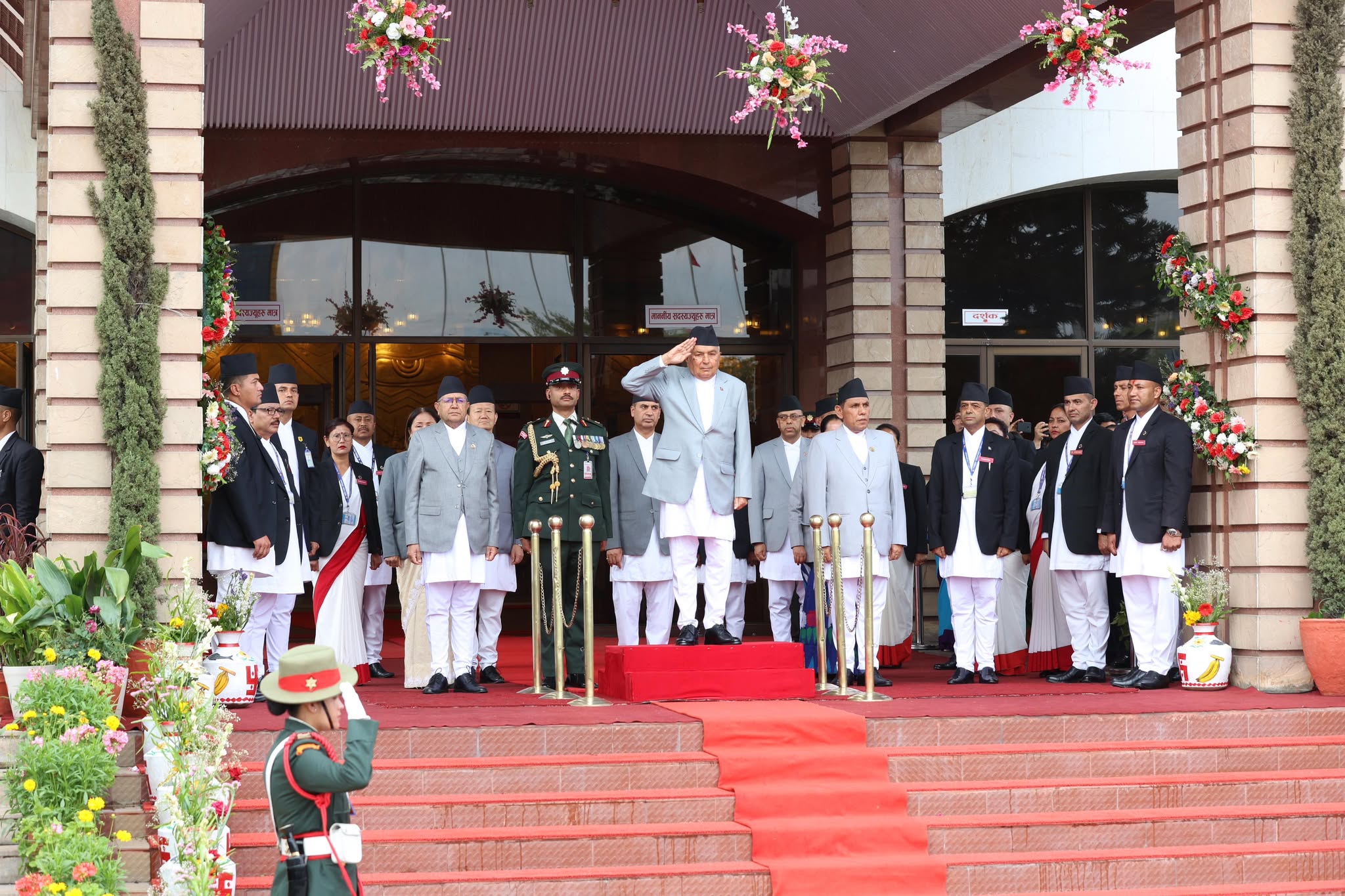 राष्ट्रपति पौडेललाई संसद् भवन गेटदेखि नेपाली सेनाको ‘रिसल्ला’सहितको राजकीय सम्मानको प्रदान गरिएको थियो । नेपाली सेनाका परामाधिपतिसमेत रहनुभएका राष्ट्रपति पौडेलको सम्मानमा सेनाको एक टुकडीले सम्मान गारत अर्पण गरेको थियो ।