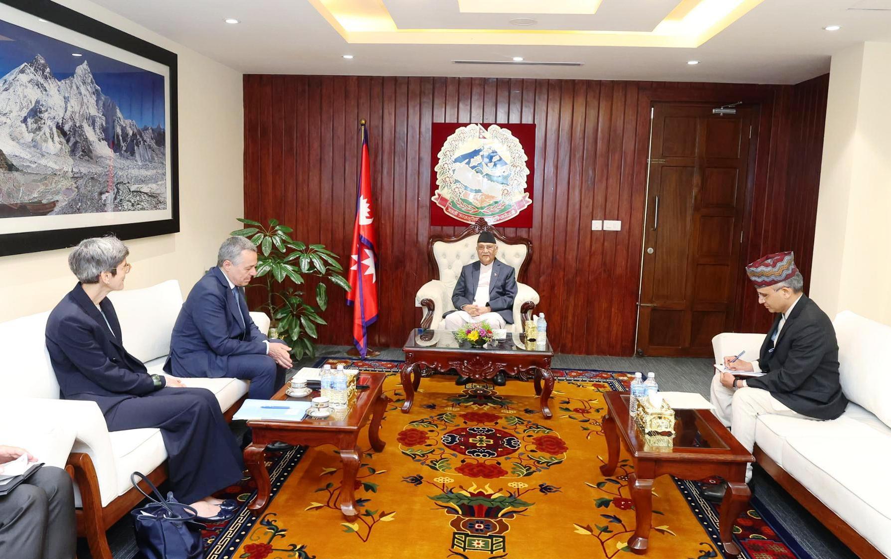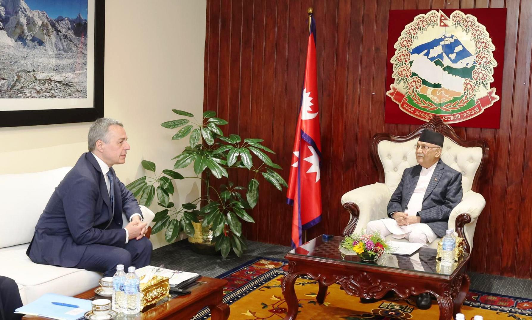 काठमाडौँ, २३ असार – प्रधानमन्त्री केपी शर्मा ओलीसँग स्विट्जरल्यान्डका सङ्घीय विदेशमन्त्री इग्नाजिओ डानियल जिओभान्नी क्यासिसले आज शिष्टाचार भेट गर्नुभएको छ ।