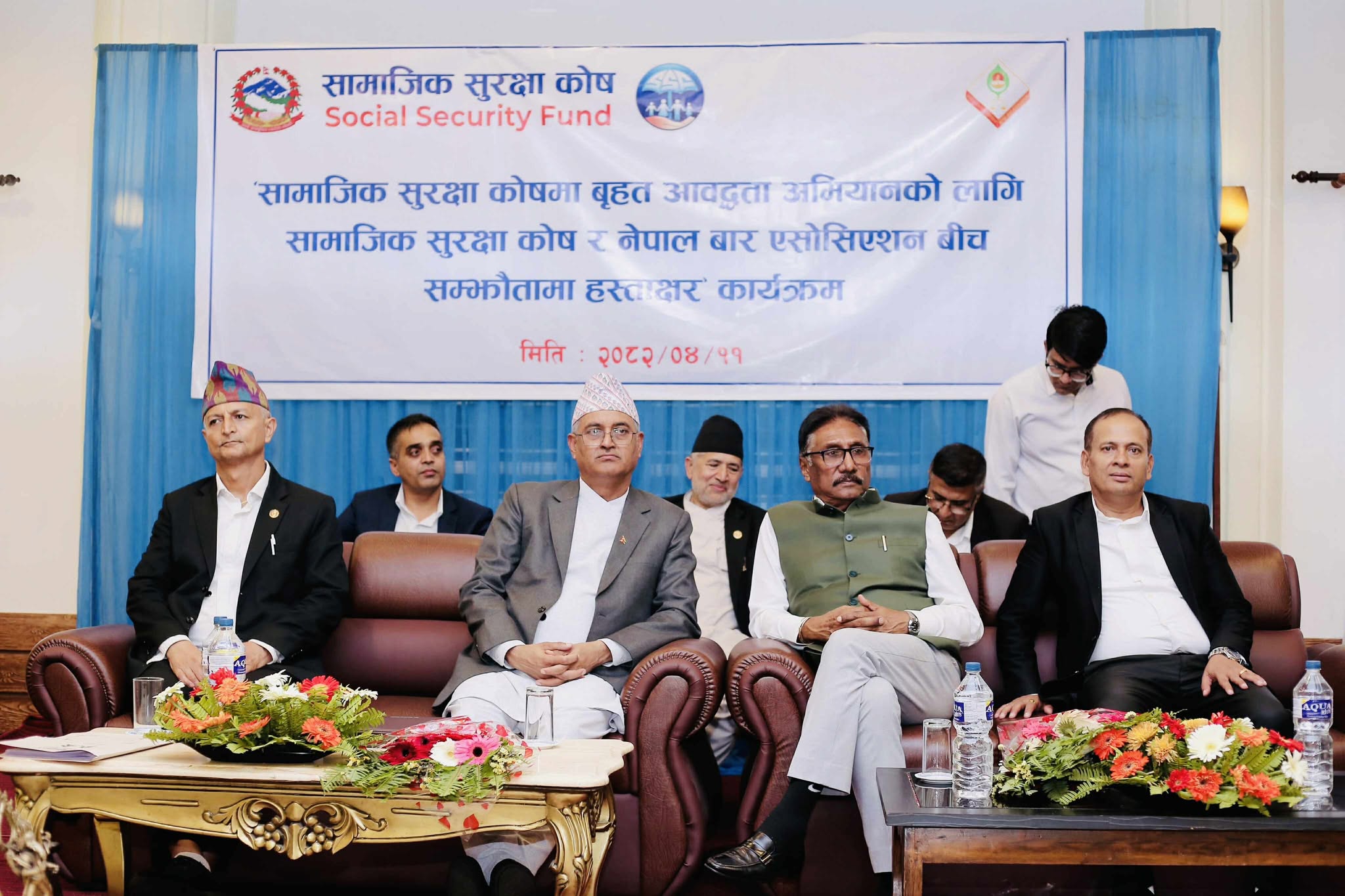 आइतबार (हिजो) सांझ एक कार्यक्रमबीच कोष र बारबीच सम्झौतापत्रमा हस्ताक्षर सम्पन्न भएको हो। कार्यक्रममा श्रम, रोजगार तथा सामाजिक सुरक्षा मन्त्री शरतसिंह भण्डारीले नेपाल बार जस्तो गरिमामय संस्था सामाजिक सुरक्षा कोषमा आबद्ध हुनु ‘विश्वासको सम्झौता’ भएको बताए। बिहानदेखि बेलुकासम्म काम गर्दा अबकाश पछि केही पनि नपाउने अवस्थाको अन्त्य गर्न यो कोषको भूमिका महत्वपूर्ण हुने उनको भनाइ थियो। “संसारमा निशुल्क केही पनि हुन सक्दैन, कसैले न कसैले तिर्नुपर्छ,” मन्त्री भण्डारीले भने, “यो कोष पेन्सनेबल समाज निर्माणको दिशातर्फको गम्भीर प्रयासको रुपमा अगाडि बढेको छ । अन्तर्राष्ट्रिय श्रम संगठनले हाम्रो यस प्रयासलाई खाडी मुलुकहरूमा रोल मोडेलको रूपमा अघि बढाउने तयारी गरिरहेको छ।” यो हाम्रो लागि गौरवको बिषय हो, उनले भने । उनले कोषमा आबद्ध संख्या २४ लाख नजिक पुगिसकेको जनाउँदै यो आफैँमा ठूलो सन्देश सहित अभियान सफलताको बाटोमा अघि बढेको बताए। “जन्मदेखि मृत्युसम्म योगदानमा आधारित सुरक्षाको ग्यारेन्टी दिने संयन्त्र हो सामाजिक सुरक्षा कोष,” उनले थपे।