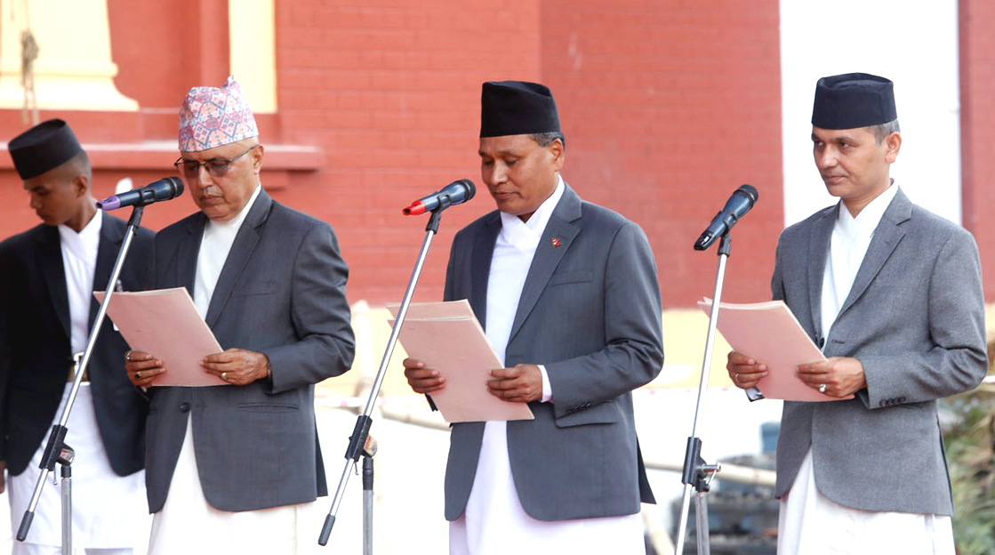 शपथग्रहण समारोह शीतल निवास परिसरमा विशेष टेन्टमुनी सम्पन्न गरिएको हो।