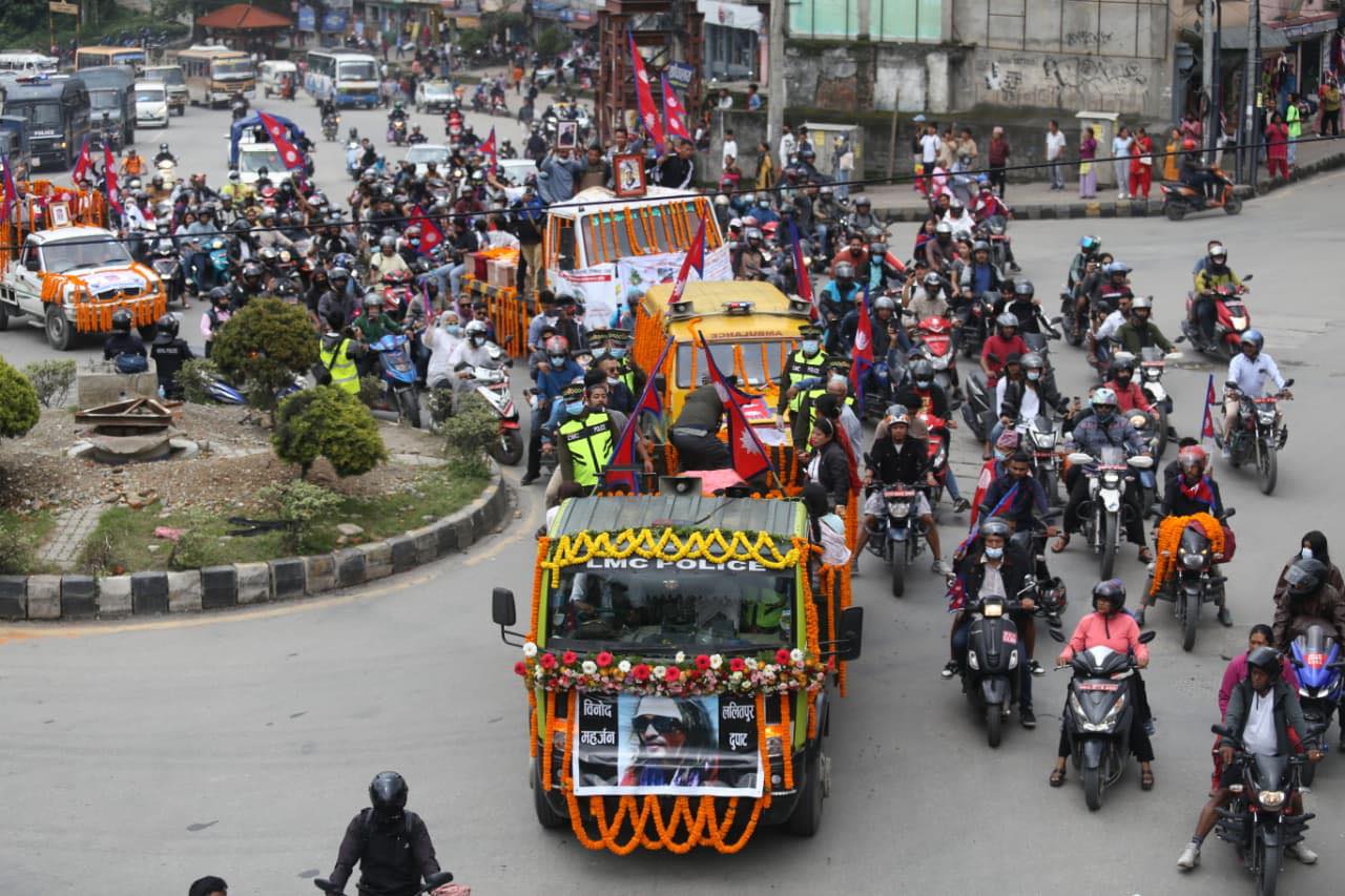 शवयात्रामा ऊर्जामन्त्री कुलमान घिसिङ र गृहमन्त्री ओमप्रकाश अर्यालसमेत सहभागी थिए। उनीहरूले राष्ट्रिय झन्डा ओढाए। मृतकहरूलाई अन्तिम श्रद्धाञ्जली अर्पण गरेका थिए।