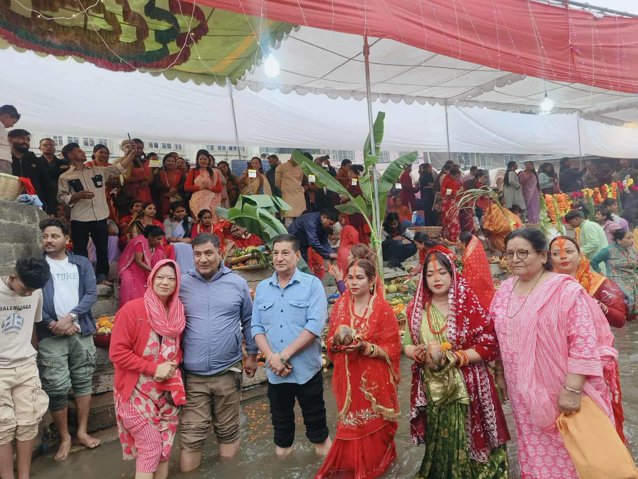 ब्रतालुले आज रातभर जाग्राम बसेर भोलि बिहान उदाउँदो सूर्यलाई अर्घ्य दिन्छन्।