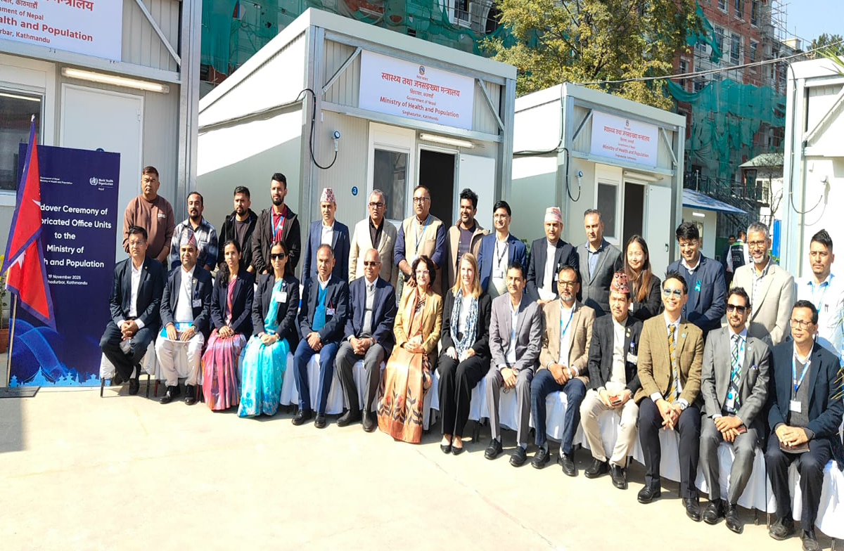 काठमाडौँ- विश्व स्वास्थ्य सङ्गठन (डब्लुएचओ) ले सिंहदरबारभित्र बनाएको स्वास्थ्य तथा जनसङ्ख्या मन्त्रालयको प्रिफ्याब भवन हस्तान्तरण गरेको छ।