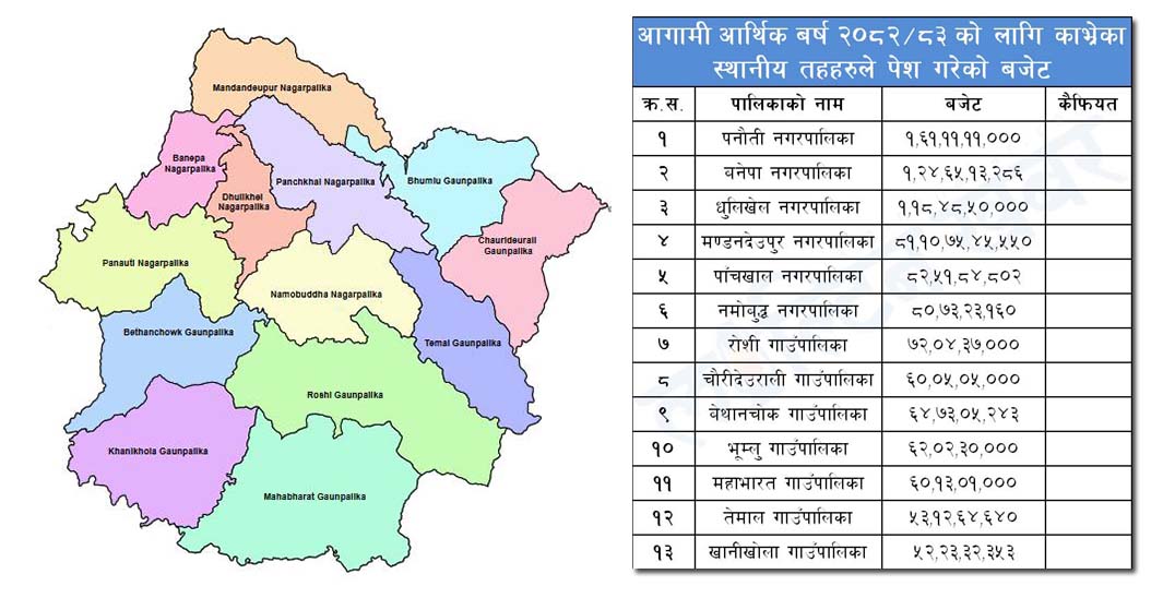 काभ्रेमा कुन पालिकाले कति बजेट ल्याए हेर्नुहोस सूचीसहित