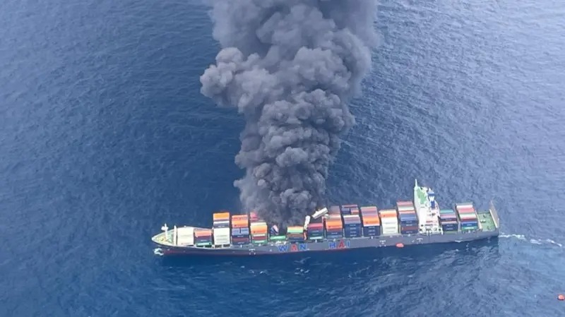 भारतको केरला तट नजिकै जहाजमा लागेको आगो नियन्त्रण बाहिर