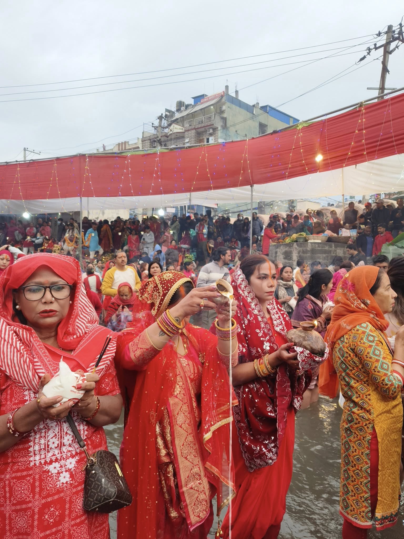 मिथिलामा आज अस्ताउँदो सूर्यलाई अर्घ दिँदै चैती छठ पर्व मनाइँदै