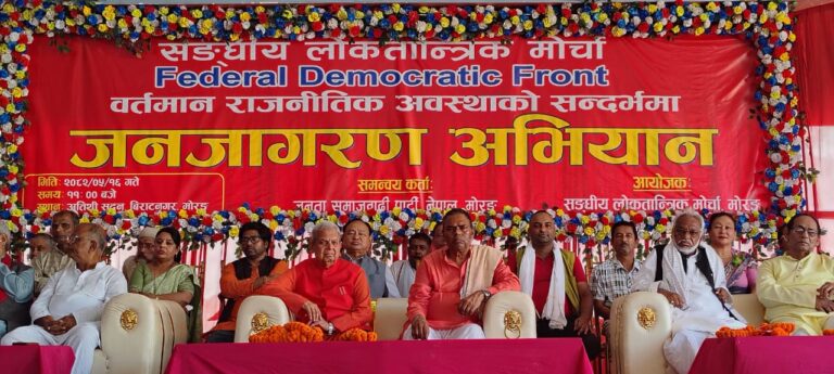 संघीय लोकतान्त्रिक मोर्चाको जनजागरण अभियान आज विराटनगरमा सम्पन्न, उपेन्द्र, महन्थ ठाकुरदेखि राजेन्द्र महतोसम्म कसले के भने ?