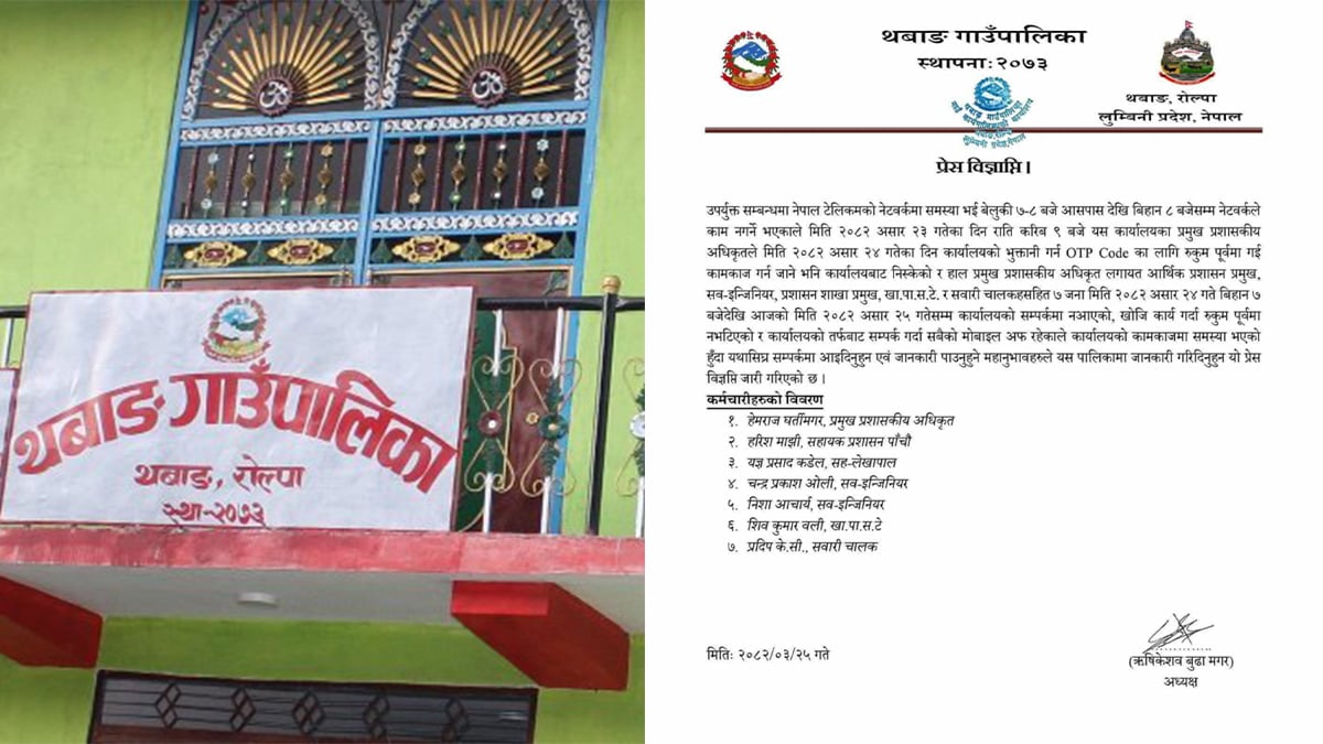 थबाङ गाउँपालिकाका सात कर्मचारी सम्पर्कविहीन, पालिकाद्वारा सार्वजनिक सूचना जारी