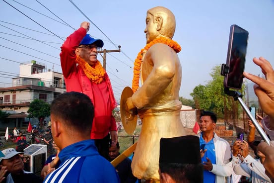 गैँडाकोटमा प्रचण्डको मर्निङ वाक, लखन थापाको सालिकमा माल्यार्पण