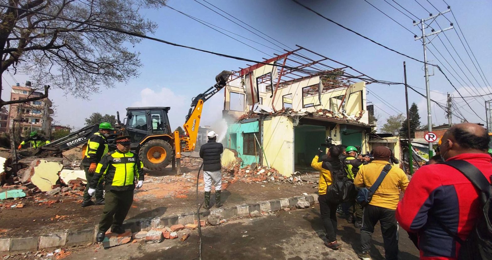 मेयर महर्जनकै उपस्थितिमा वडा कार्यालयसहित अनधिकृत संरचनामा डोजर