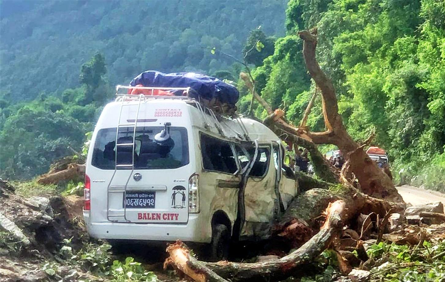 गुडिरहेको माइक्रो बसमाथि रुख ढल्दा नौ यात्रु घाइते