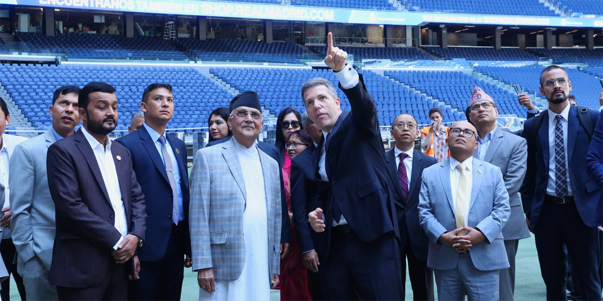 प्रधानमन्त्री ओलीबाट रियल मेड्रिडको रङ्गशाला अवलोकन